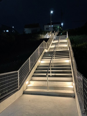 城北団地のNew階段城北団地から泉小学校へ向かう階段が新しくなり、ライトアップされた階段はとても幻想的です。