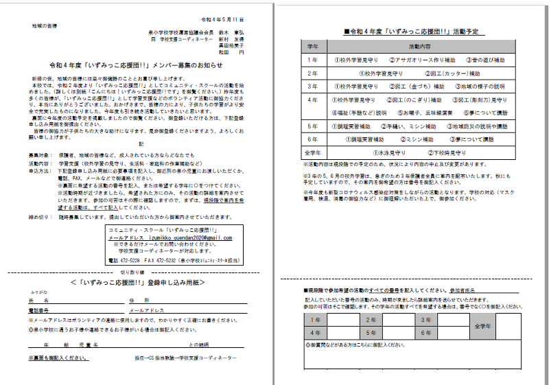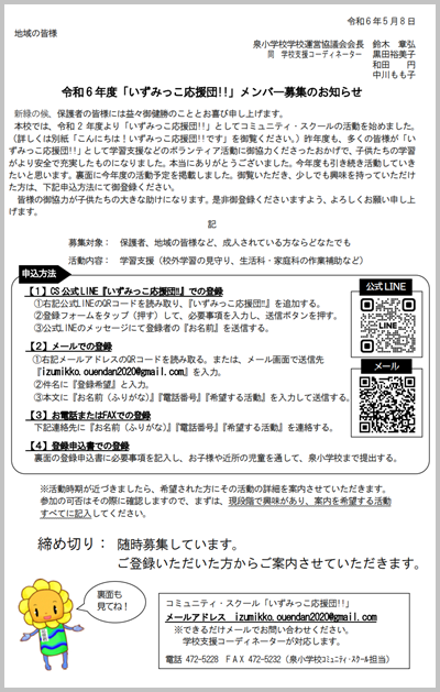 ★泉小学校コミュニティスクールだより「いずみっこ応援団!!」(裏)