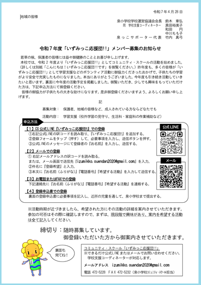 ★令和7年度「いずみっこ応援団!!」メンバー募集のお知らせ