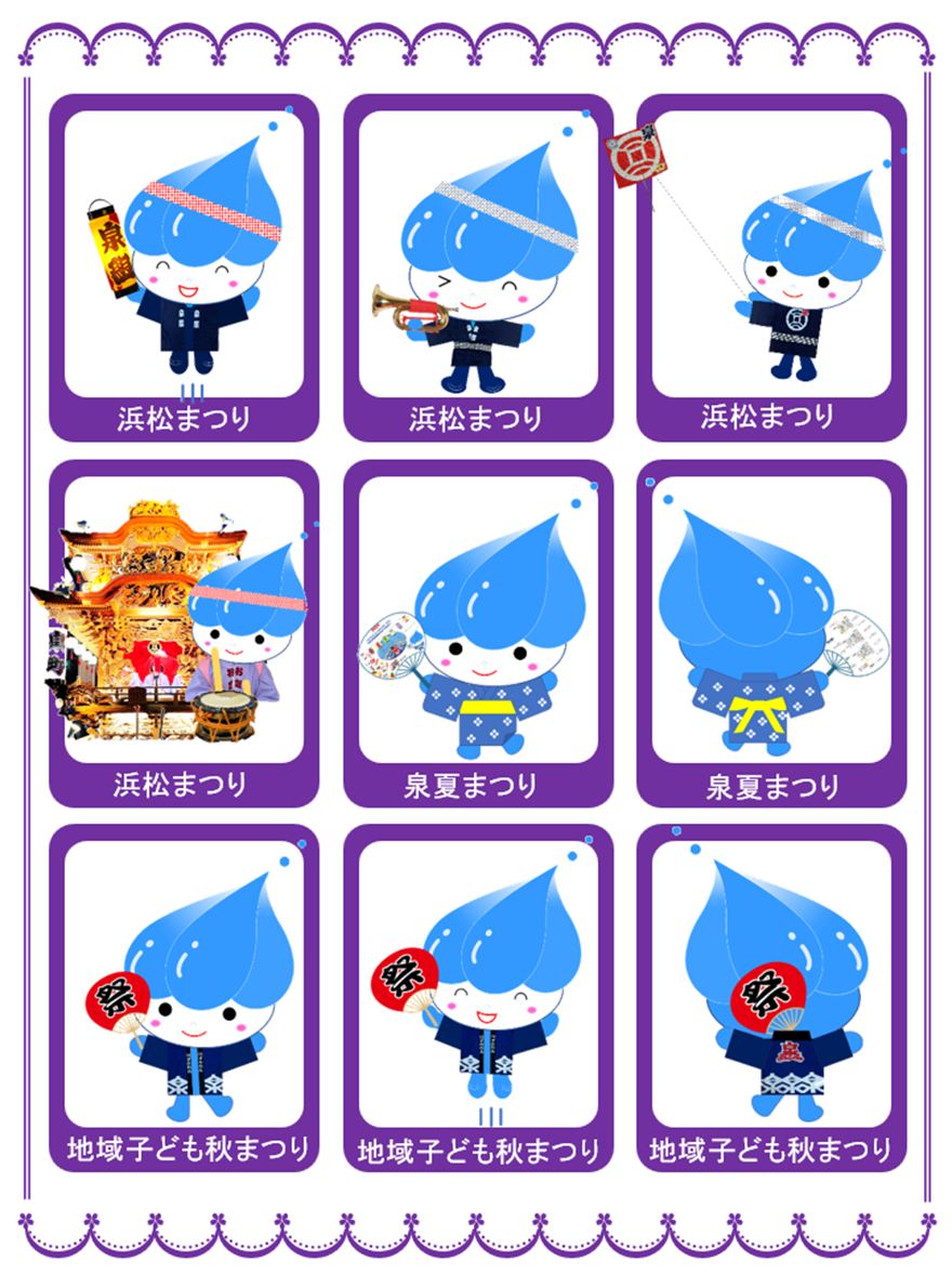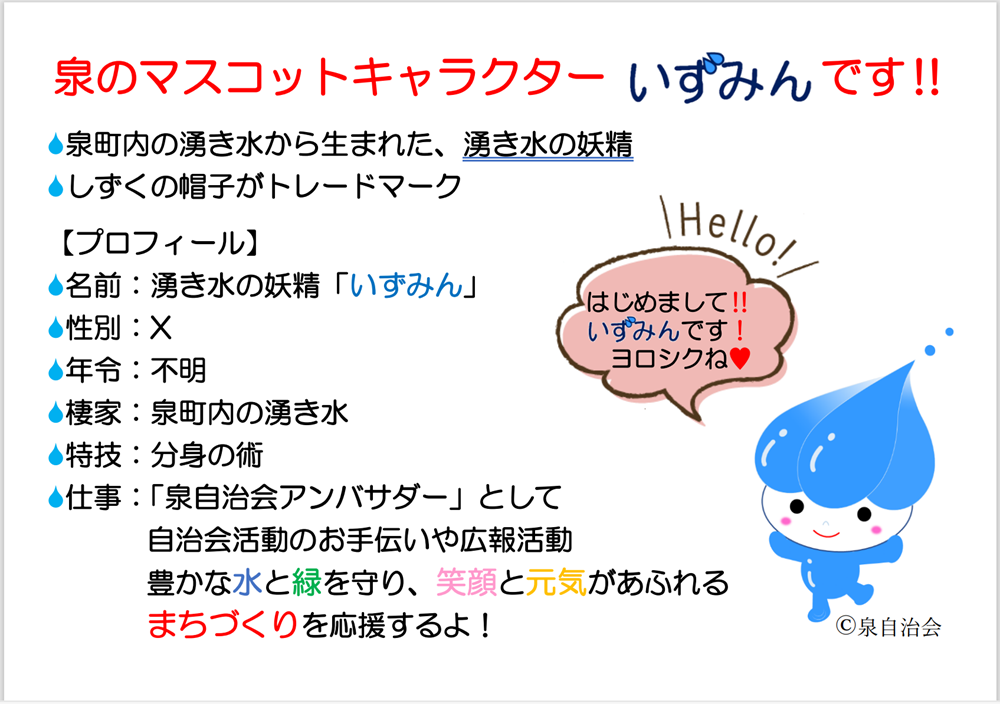 をクリックすると「いずみん誕生の秘密」がスタートします。いずみんのポーズいろいろ